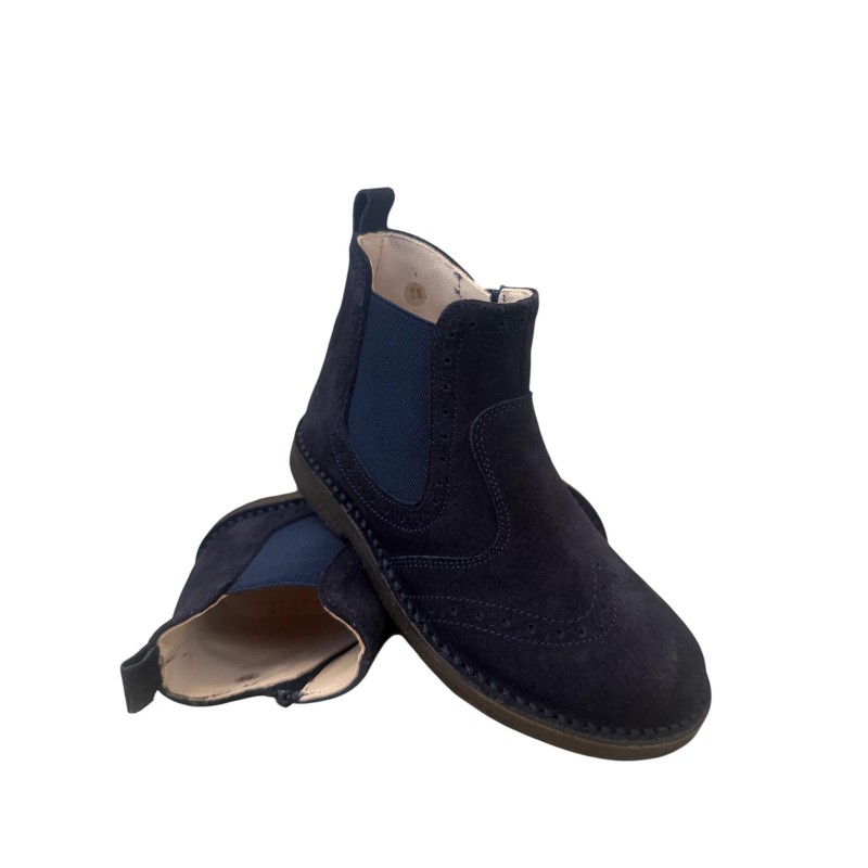 Onze donkerblauwe suède Chelsea boot is dé perfecte mix van klassiek en modern. Het diepe navy kleurtje geeft elke outfit een luxe uitstraling, terwijl de subtiele brogue-details zorgen voor een speels accent.