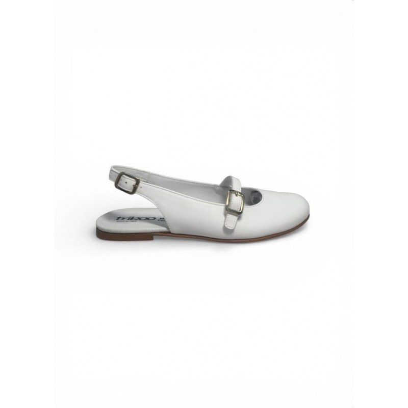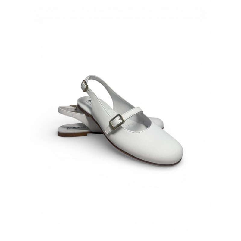 Witte leren ballerina met bandje - 9424
