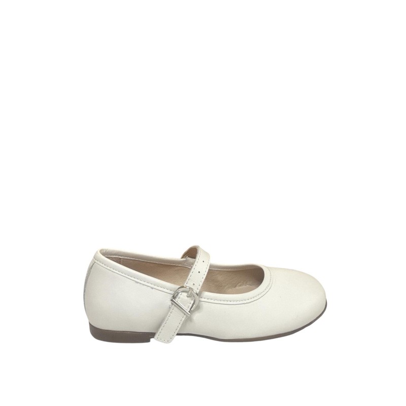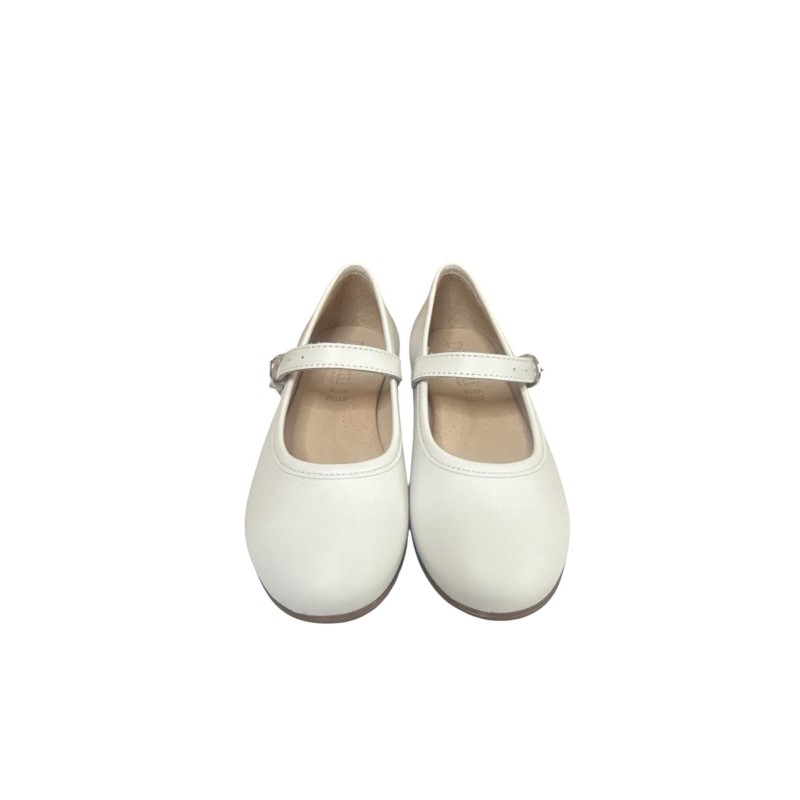 Deze elegante witte ballerina is vervaardigd van hoogwaardig, soepel leer en ontworpen met oog voor comfort en pasvorm. Het verstelbare bandje zorgt voor extra ondersteuning en een veilige sluiting tijdens het lopen en spelen. Dankzij de zachte, neutrale kleur is dit model perfect voor bruiloften, communies en andere feestelijke momenten, maar ook prachtig voor dagelijks gebruik. Een tijdloze keuze voor stijlvolle kleine voeten.