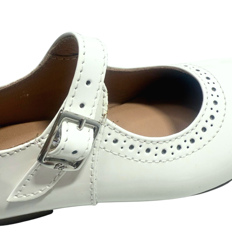 Het fijne bandje met gesp geeft niet alleen extra charme, maar zorgt ook voor een goede pasvorm en stevigheid tijdens het lopen. De verfijnde perforatiedetails maken het model nét iets specialer, zonder zijn klassieke karakter te verliezen.