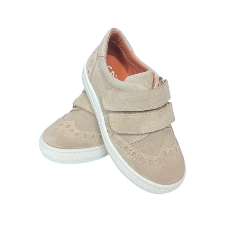 Beige suède klittenband sneaker - 8480Y