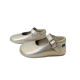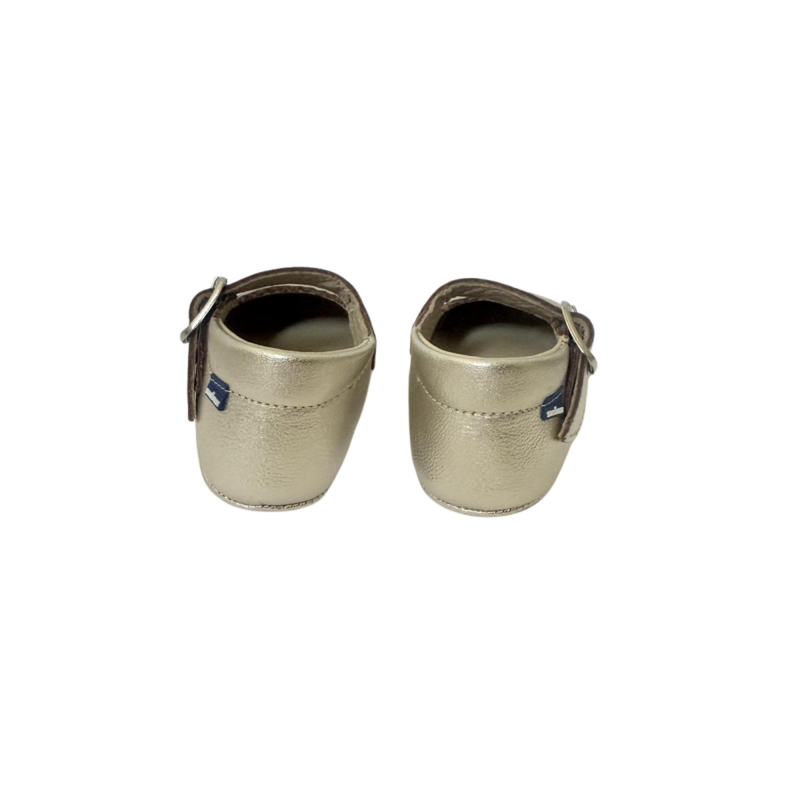 Het fijne bandje met gesp zorgt voor een mooie aansluiting om de voet en geeft extra stevigheid bij de eerste stapjes. De zachte, soepele zool ondersteunt de natuurlijke beweging, terwijl de verfijnde afwerking het schoentje een tijdloze uitstraling geeft.